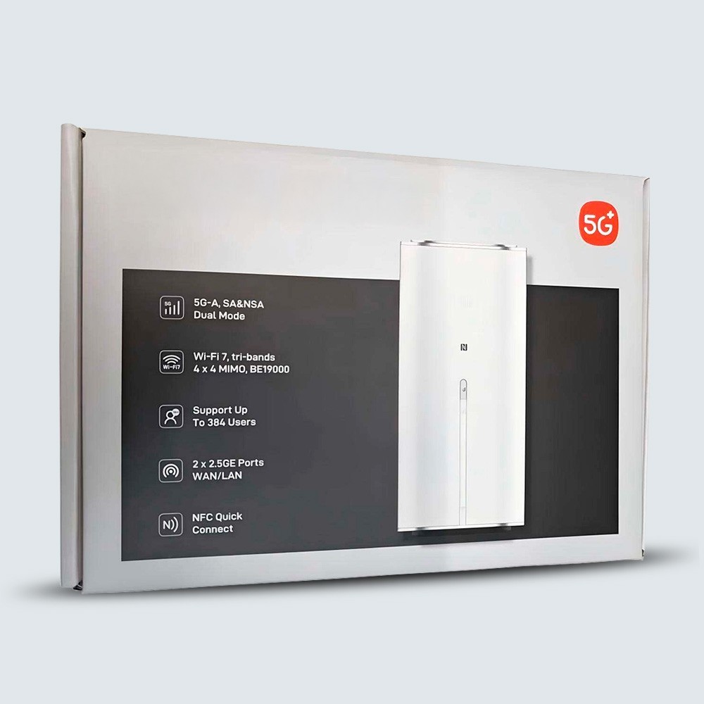 Feature highlights:Experience the world's first 5G AI FWA router, ZTE G5 Ultra MC8531, featuring Wi-Fi 7 with a peak rate of 19000Mbps and 5G-A ultra-high-speed network. Equipped with a 13dBi high-gain AI antenna, it offers 50% wider beamwidth, 20% faster data rates in weak signals, and supports up to 384 device connections. Enjoy seamless connectivity with dual 2.5G network ports, NFC one-touch connection, and tri-band Wi-Fi access for unmatched performance.